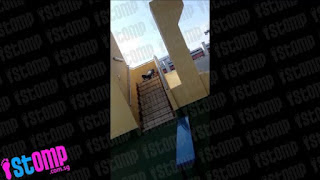 Aksi pasangan yang bepakaian seragam sekolah berjaya di rakam oleh orang awam, pasangan remaja terbabit sedang asyik dan leka memuas nafsu di tangga sekolah berjaya di rakam.