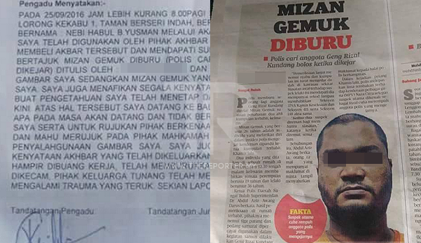 "Mereka telah menggunakan gambar saya sedangkan Mizan Gemuk yang tertera dalam akhbar tersebut bukan saya. Saya juga menafikan segala kenyataan yang dikeluarkan oleh pihak media tersebut," katanya.