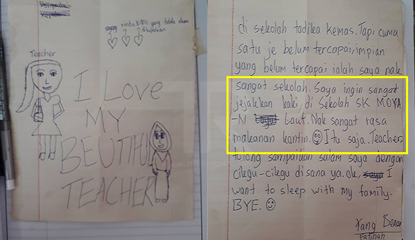 "Saya ingin sangat jejakkan kaki di Sekolah Kebangsaan Moyan Laut. Nak sangat rasa makanan kantin," tulis Fatihah dalam surat tersebut.