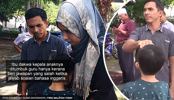 Nur Syaheerah Sutchira Abdullah berkata, kejadian itu berlaku pada Selasa lalu di dalam kelas, apabila anaknya, Adam Mikhael Mubashir, 9, ditumbuk guru terbabit di bahagian kepala sehingga menyebabkan mangsa terjatuh dan bahagian belakang pinggang anaknya terkena bucu meja.