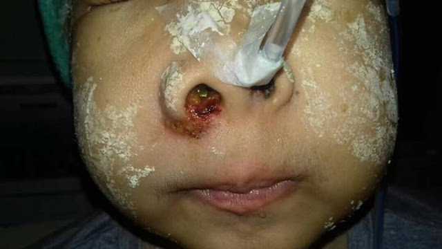 Kanser menyerang hidung isteri sampai ke bahagian dalam dah hancur, reput kemudian melarat ke mulut, lelangit berlubang. Kini ia melarat ke bahagian bawah gusi dan tekak. Sebab itu isteri tak dapat makan dan minum. Hendak menelan air liur pun terseksa. Kalau nak gambar, boleh WhatsApp saya.